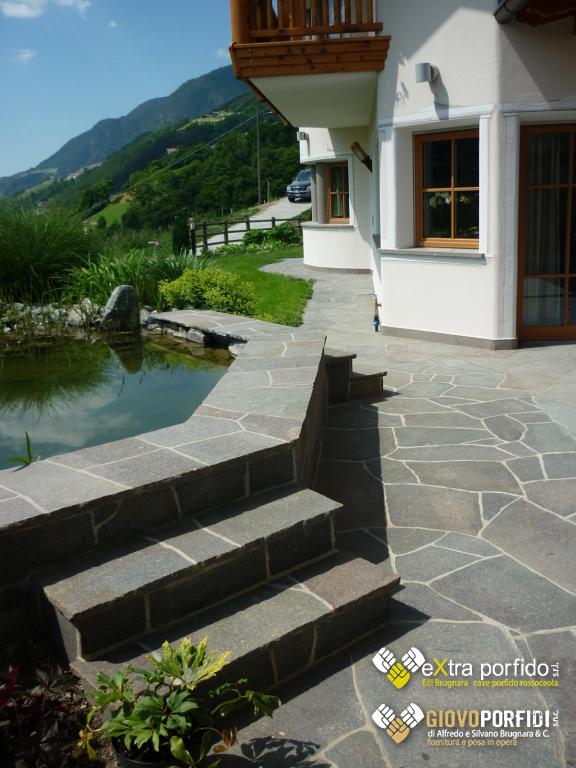 Le alzate sono parte integrante dei gradini e vengono usate per rivestire la parte verticale di uno scalino. Le teste possono essere lavorate a spacco o segate. Piano liscio naturale e coste segate, spessori da 1 a 3 cm; piano fiammato e coste segate, in spessori fissi da 1 o 2 cm. e misure a richiesta. Il battiscopa/zoccolino viene usato come elemento di finitura per la linea d'incontro delle superfici verticali con quelle orizzontali. Fino a 10 cm d'altezza hanno una funzione di battiscopa; al di sopra di questa misura diventano elementi di decorazione. L'altezza varia tra i 6 e i 30 cm; la lunghezza è quasi sempre a correre.